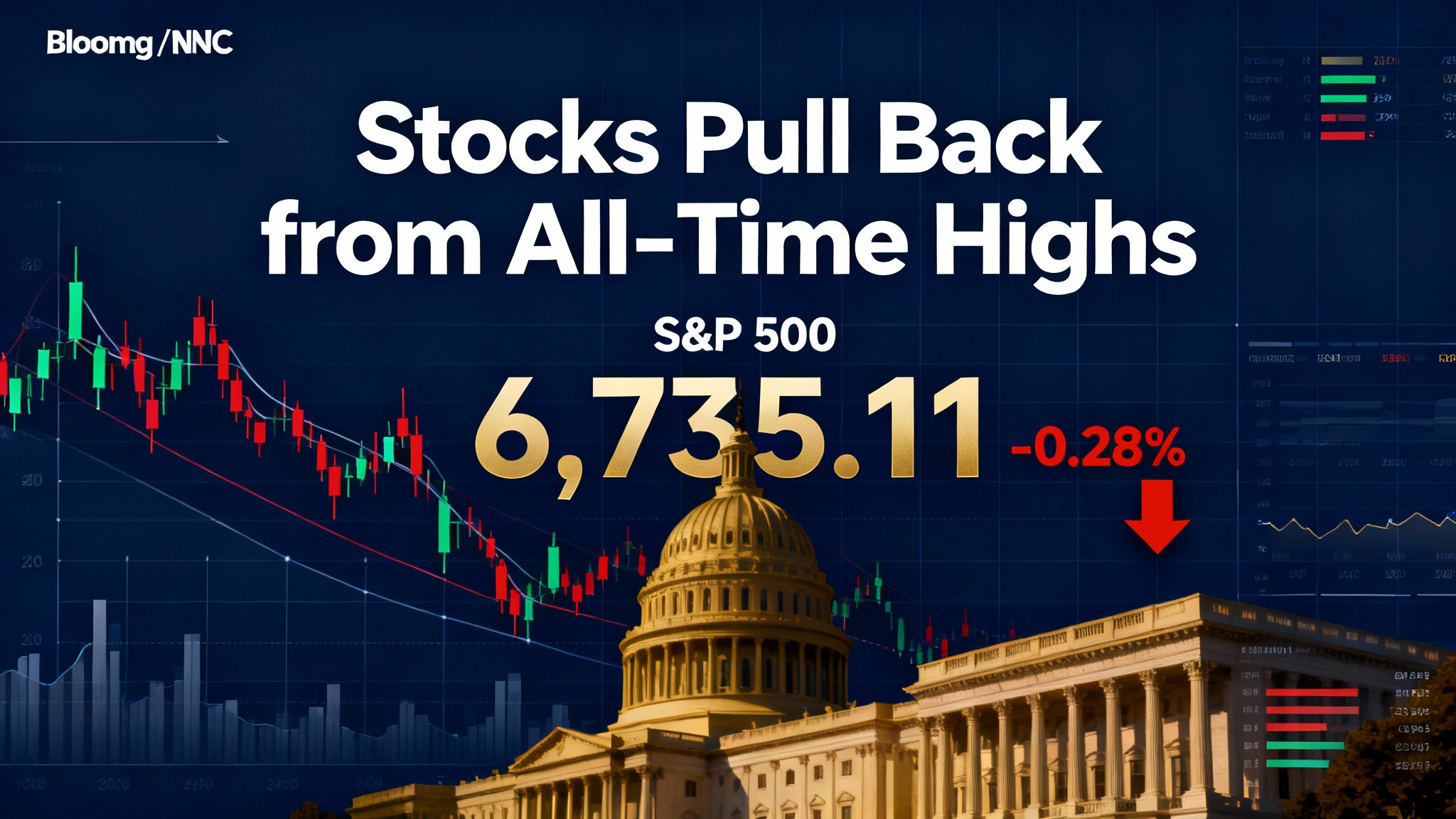 - S&P 500 closed at 6,735.11, down 0.28% after hitting record highs earlier this week