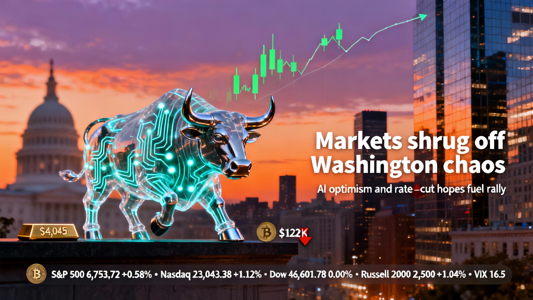 Markets shrug off Washington chaos as AI optimism and rate cut hopes fuel record-breaking session